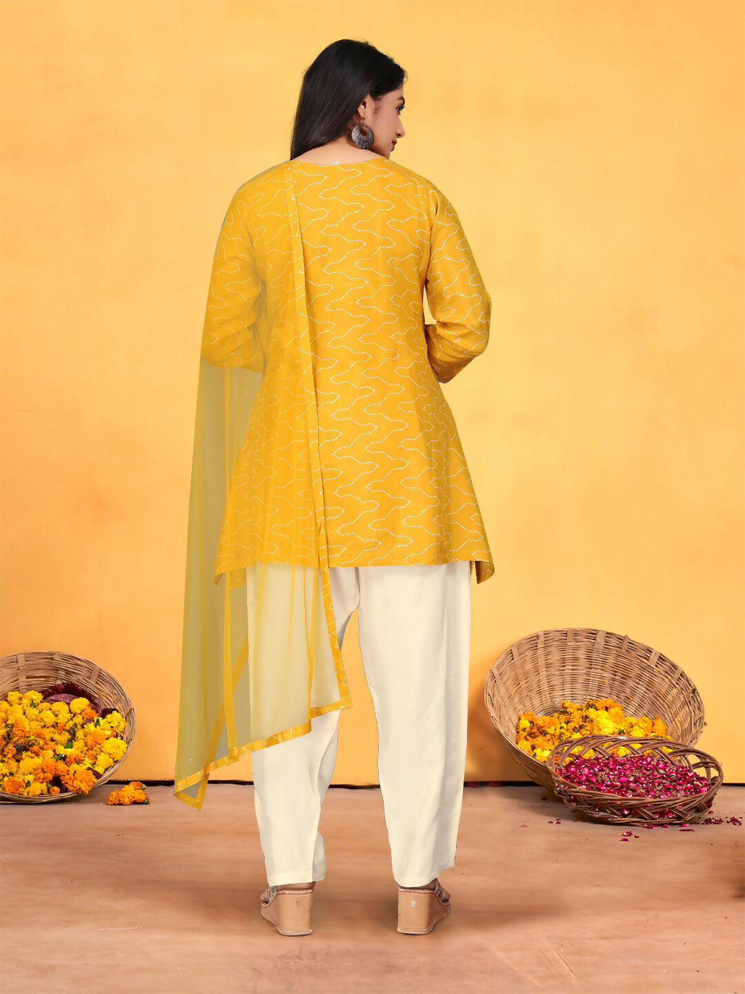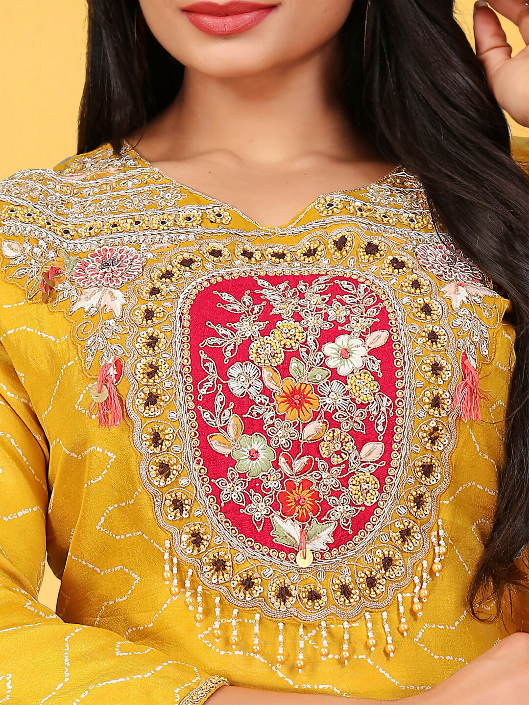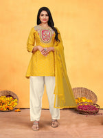 Joban Fashion Mustard Cotton Premium Pure Viscose Print Dola With Handwork Kurta set