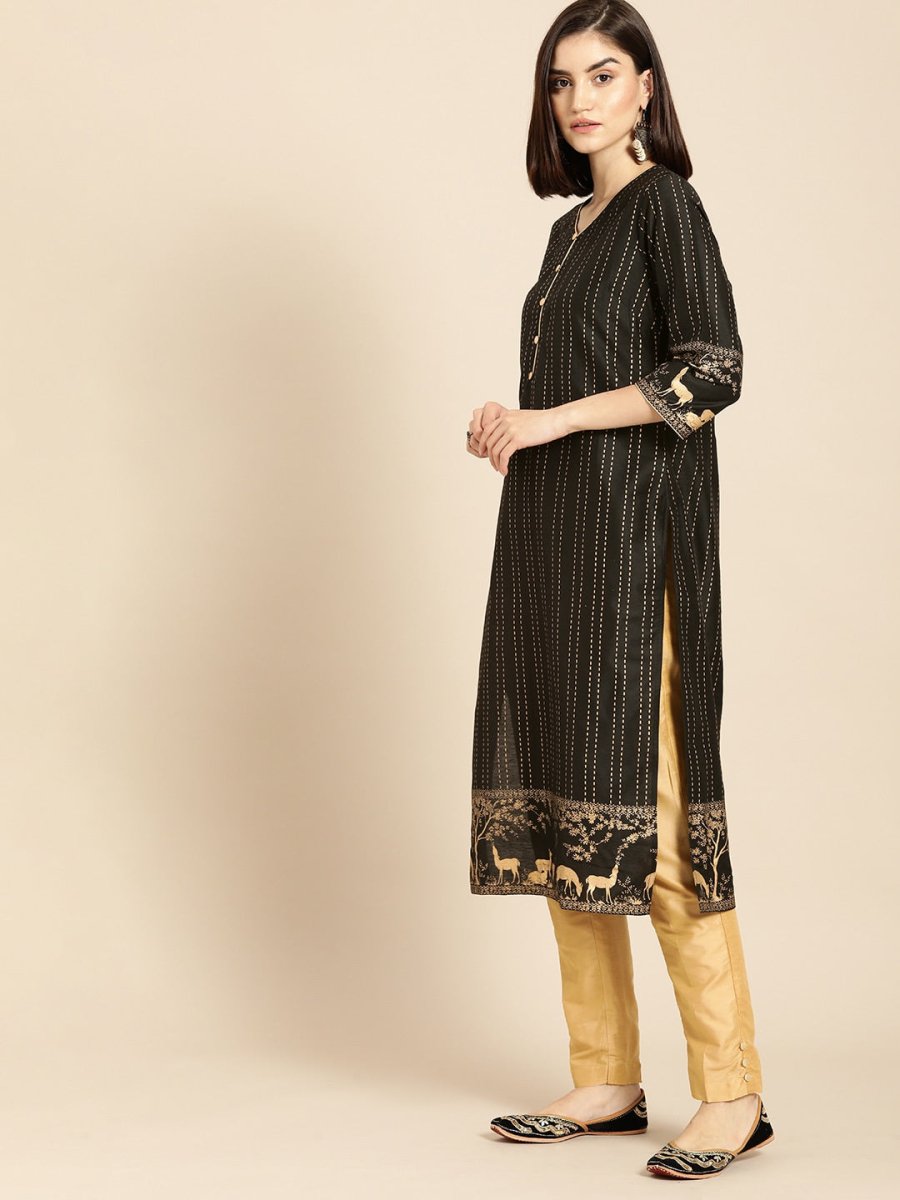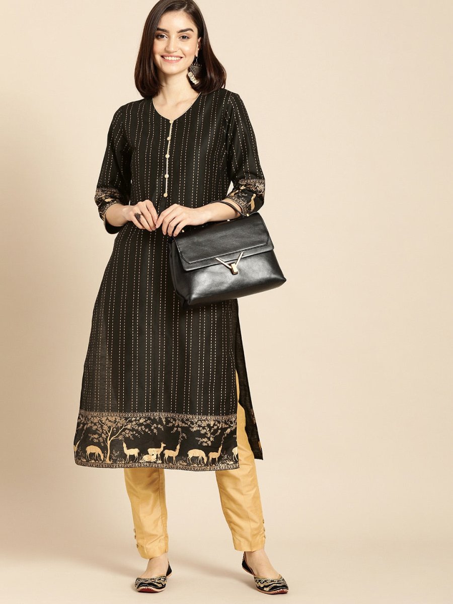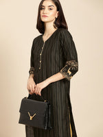 Black & Gold striped Kurta with Trousers