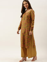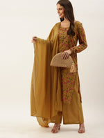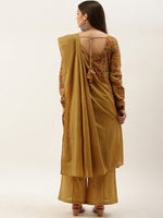 All About You Women Brown Floral Print Straight Cotton Kurta with Palazzos & Dupatta