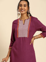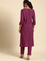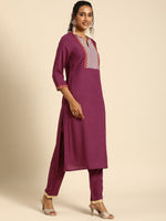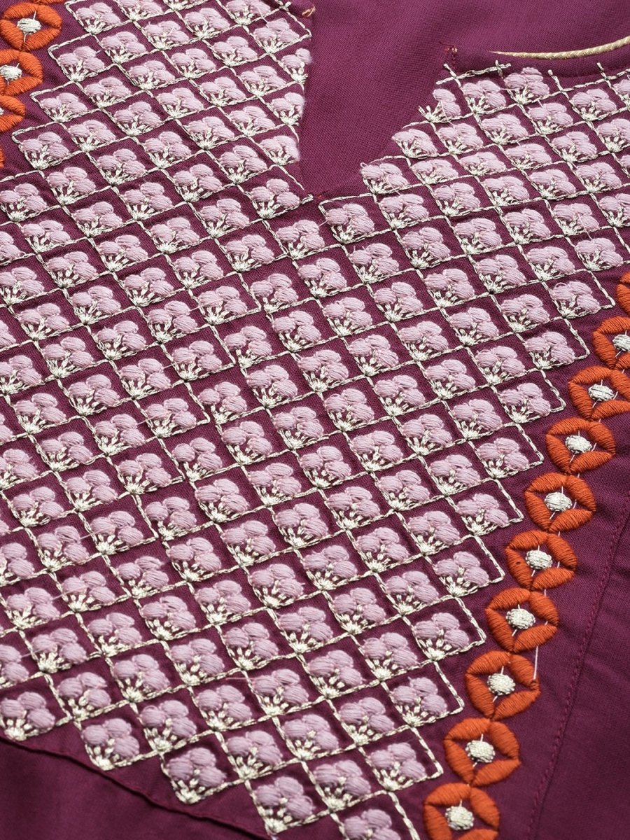 All About You Women Purple Ethnic Motifs Yoke Design Regular Thread Work Kurta with Trousers