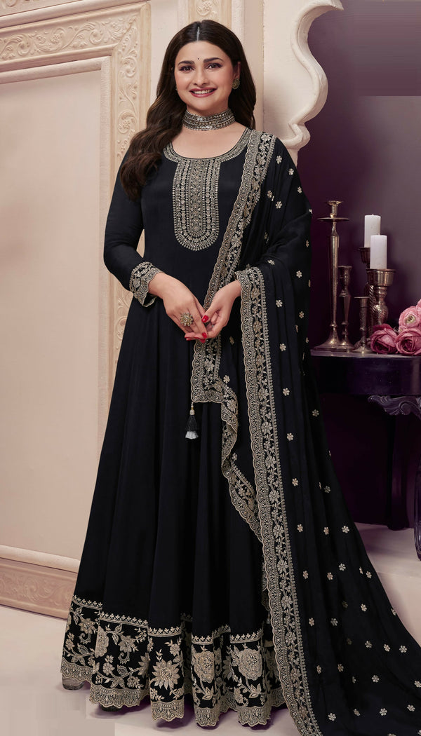 Anaita Black Embroidered Silk Stitched Anarkali Suit