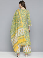 HERE&NOW Floral Printed Regular Pure Cotton Kurta with Palazzos & With Dupatta