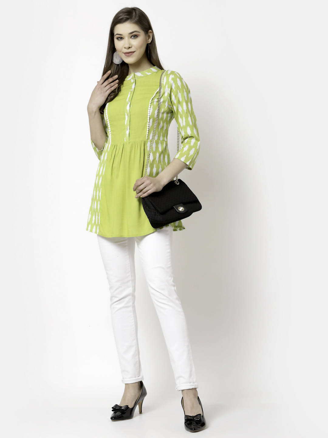 Myshka Women Green Pure Cotton Printed 3/4 Sleeve Round Casual Tunic