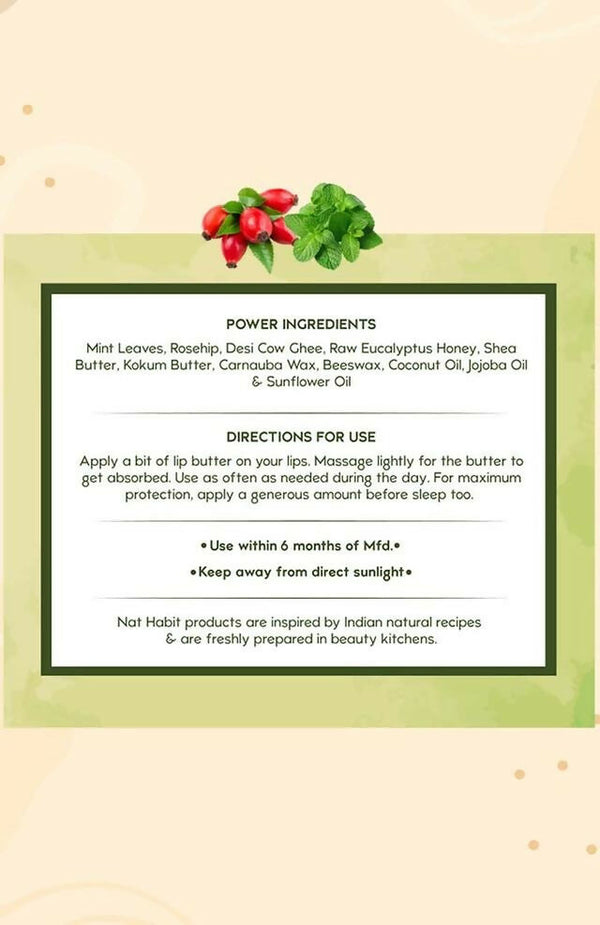 Nat Habit Mint Rosehip Lip Butter - 10 gm