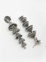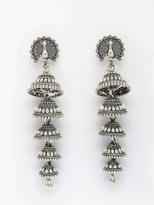 NVR Women Silver Plated Oxidized Peacock Design Layered Jhumka Earrings