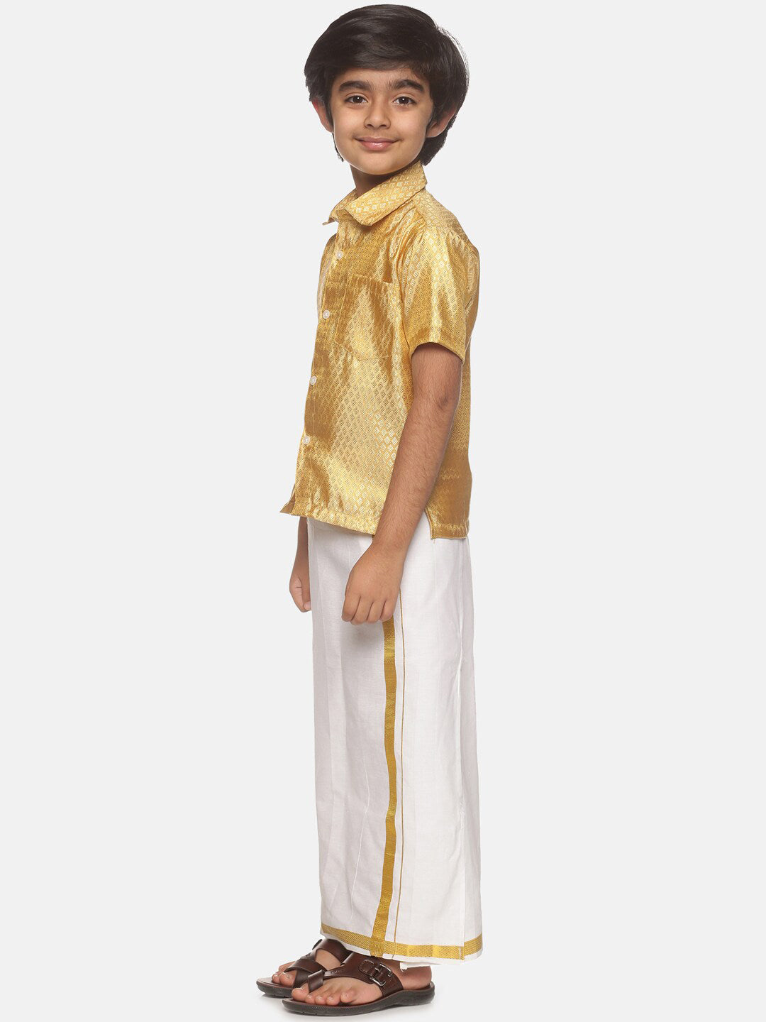Sethukrishna Boys Golden & White Shirt with Dhoti