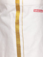 White solid dhoti, has a stick-on wist for adjustable fit and golden border