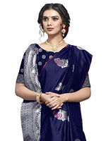 Shiv Textiles Women's Dark Blue Jacquard Art Silk Saree