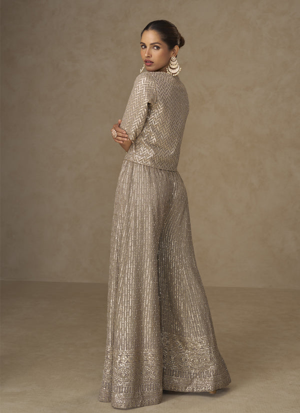Vegaa Fashion Beige Georgette Embroidered & Hand Work Jacket Style Co-Ord Set