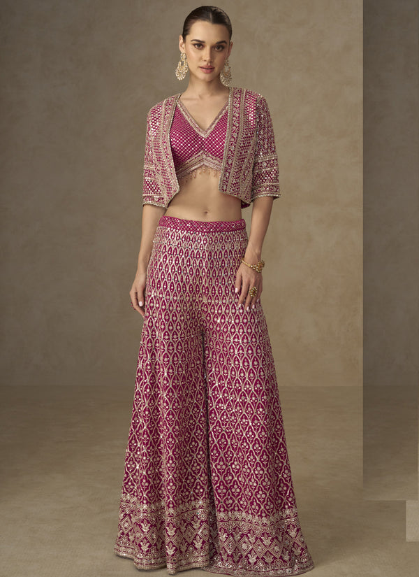Vegaa Fashion Pink Georgette Embroidered & Hand Work Jacket Style Co-Ord Set