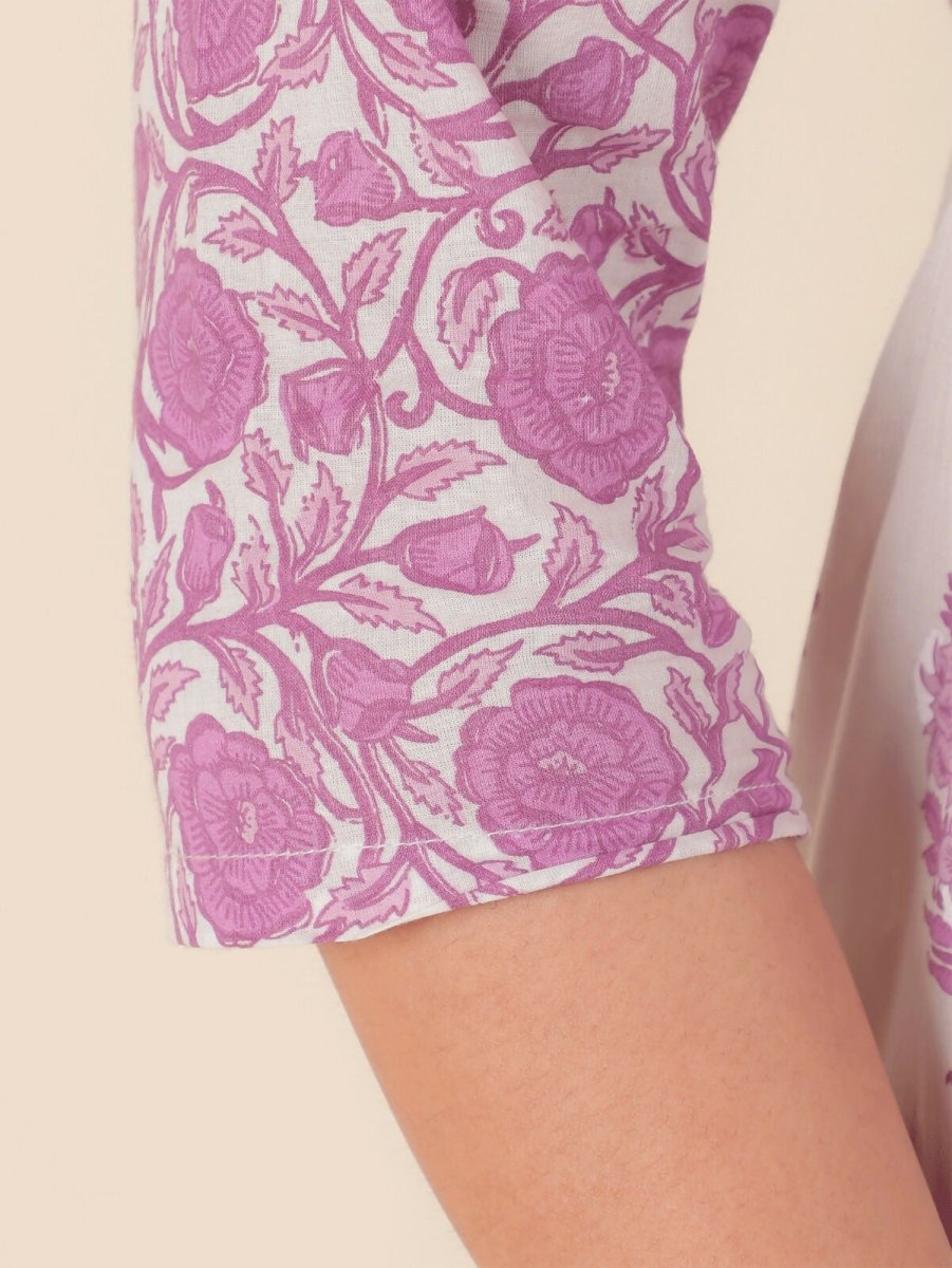 Aramya Anarkali Soft Cotton Floral Print Women's Kurta Set - White