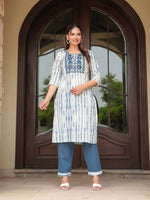 Aramya Straight Soft Cotton Tie-Dye Print Women's Kurta Set - BlueElevate your style with our uniquely designed kurta set, perfect for daily wear o...