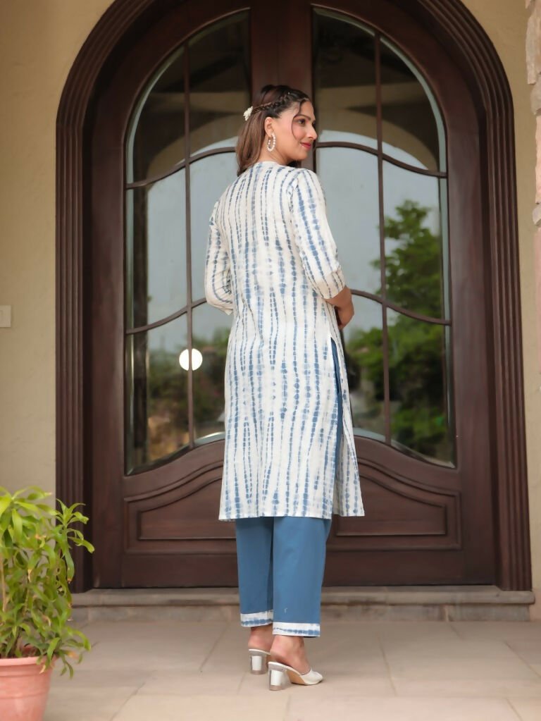 Aramya Straight Soft Cotton Tie-Dye Print Women's Kurta Set - Blue