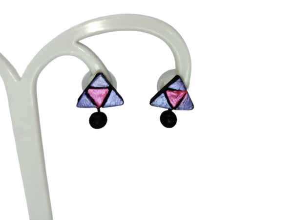 Terracotta Triangle Ear Studs With DropsAbout This Item: Terracotta triangle shaped multi coloured ear studs with drops are designed and crafted wi...