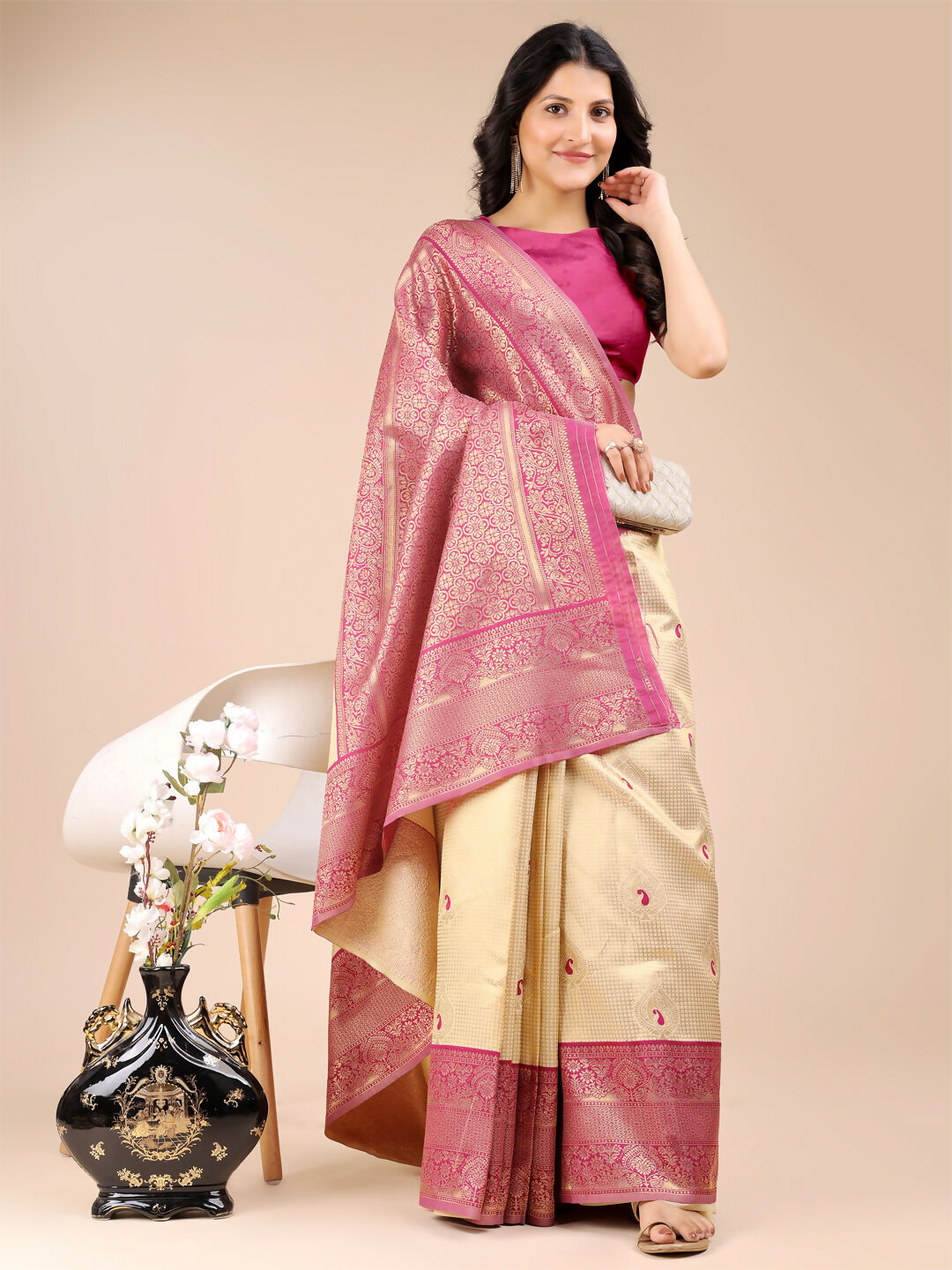 Astita Aura Silk Cream Magenta Banarasi Silk Saree