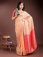 Drape yourself in understated charm with this elegant Orange cotton saree, adorned with subtle buta work and a rich contrasting pallu in royal hues. Light in weight and breathable, this saree combines timeless tradition with all-day comfort. A perfect pick for casual wear, festive occasions, or serene gatherings.