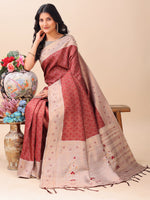 Astita Graceful Maroon & Beige Lichi Silk Saree with Elegant Woven Pallu - Timeless Beauty for Every Occasion - Distacart