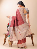 Astita Graceful Maroon & Beige Lichi Silk Saree with Elegant Woven Pallu - Timeless Beauty for Every Occasion