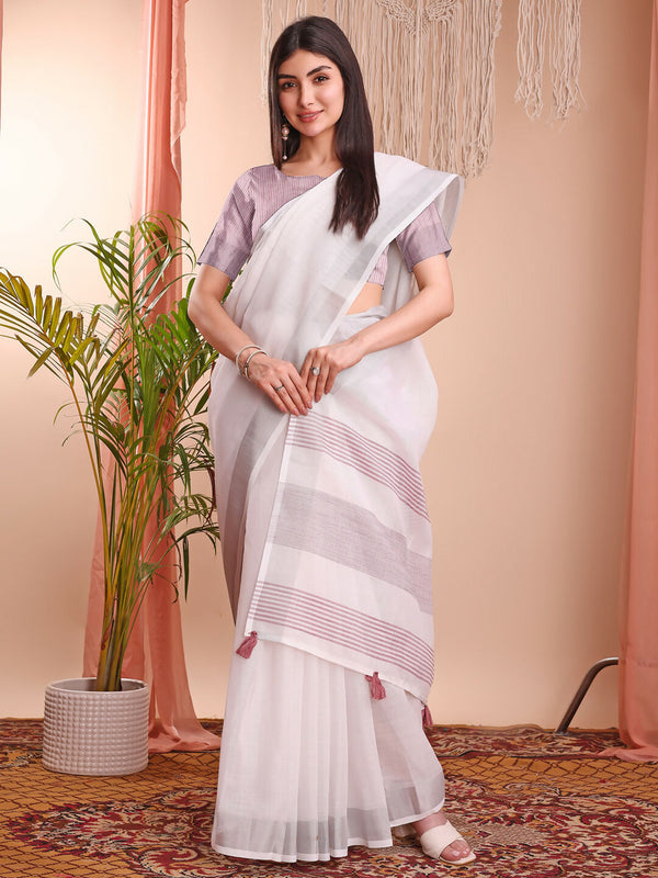 Astita The White Loom White Linen Cotton Saree Color : White Saree Fabrics : Linen Cotton Blouse Fabrics : Linen Cotton Saree Length : 5.5 Mete...