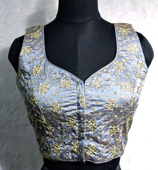Kia Fashions Grey Sequins & Zari Embroidered Readymade Blouse