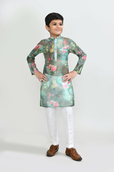 Joban Fashion GrorgetteGreenKurta With Straight Fit Pant - 1Y-2Y