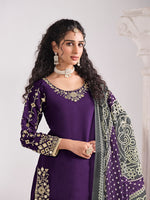 Fashion and trend could be at the peak of your elegance the moment you attire this purple chanderi silk trendy salwar kameez. The desirable embroidered, mirror and zari work a significant characteristic of this attire. Comes with matching bottom and dupatta. (Slight variation in color, fabric & work is possible. Model images are only representative.)Legal Disclaimer :Product color may slightly vary due to photographic lighting sources or your monitor settings.