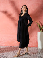 The Black V-Neck Flared Kurta Short Palazzo Set is a chic and modern ensemble, perfect for casual or semi-formal occasions. The kurta features a flattering V-neckline and a flared silhouette, creating an elegant yet comfortable look.