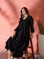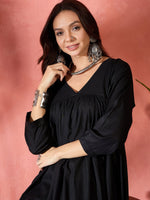 InWeave Black V-Neck Flared Kurta Short Palazzo Set