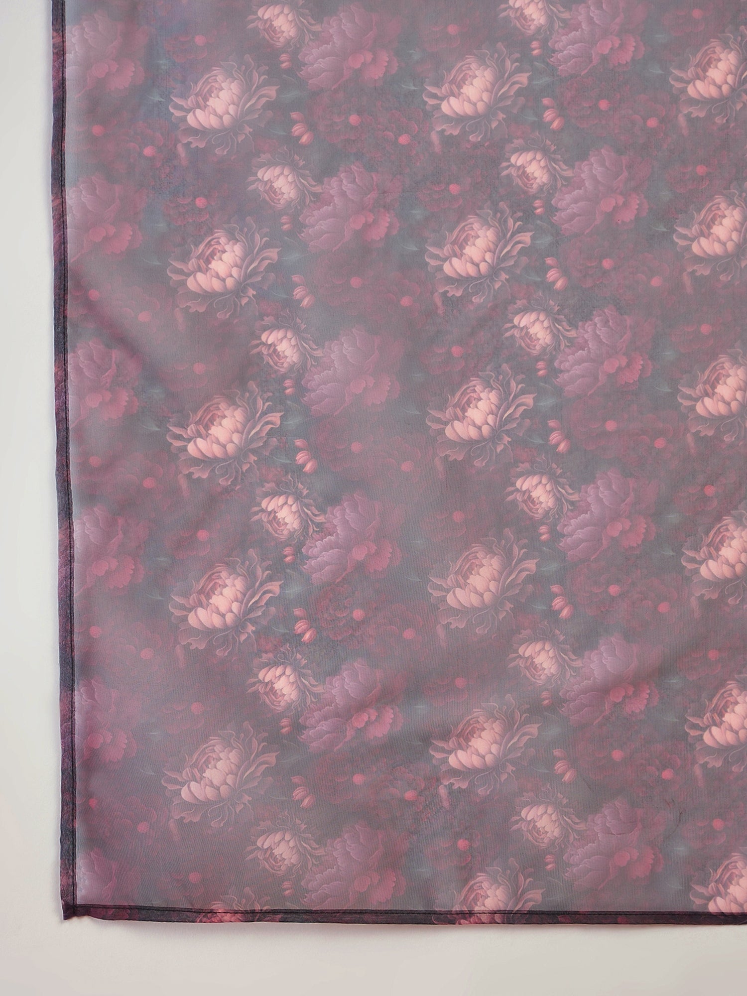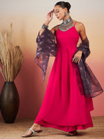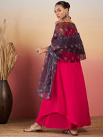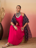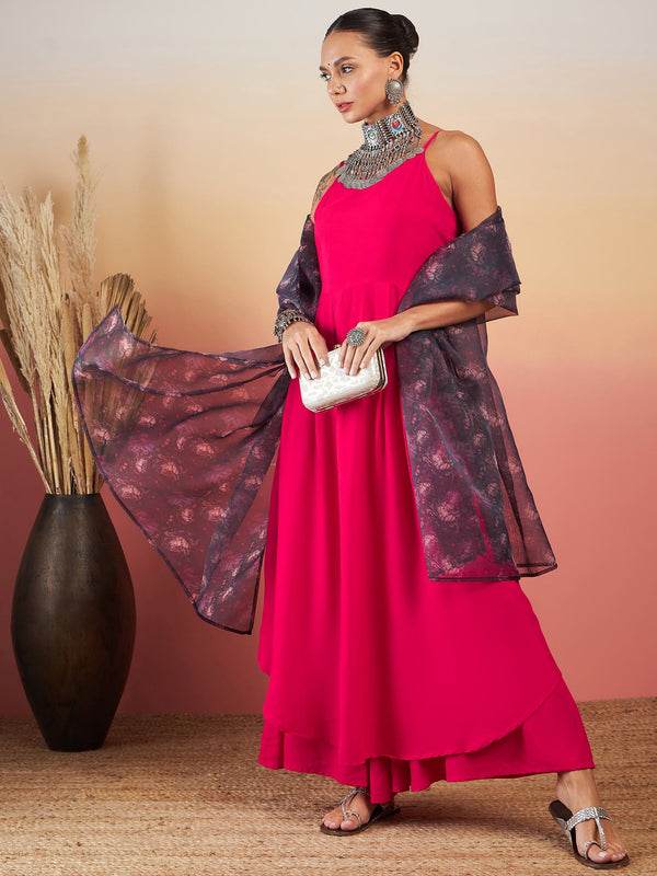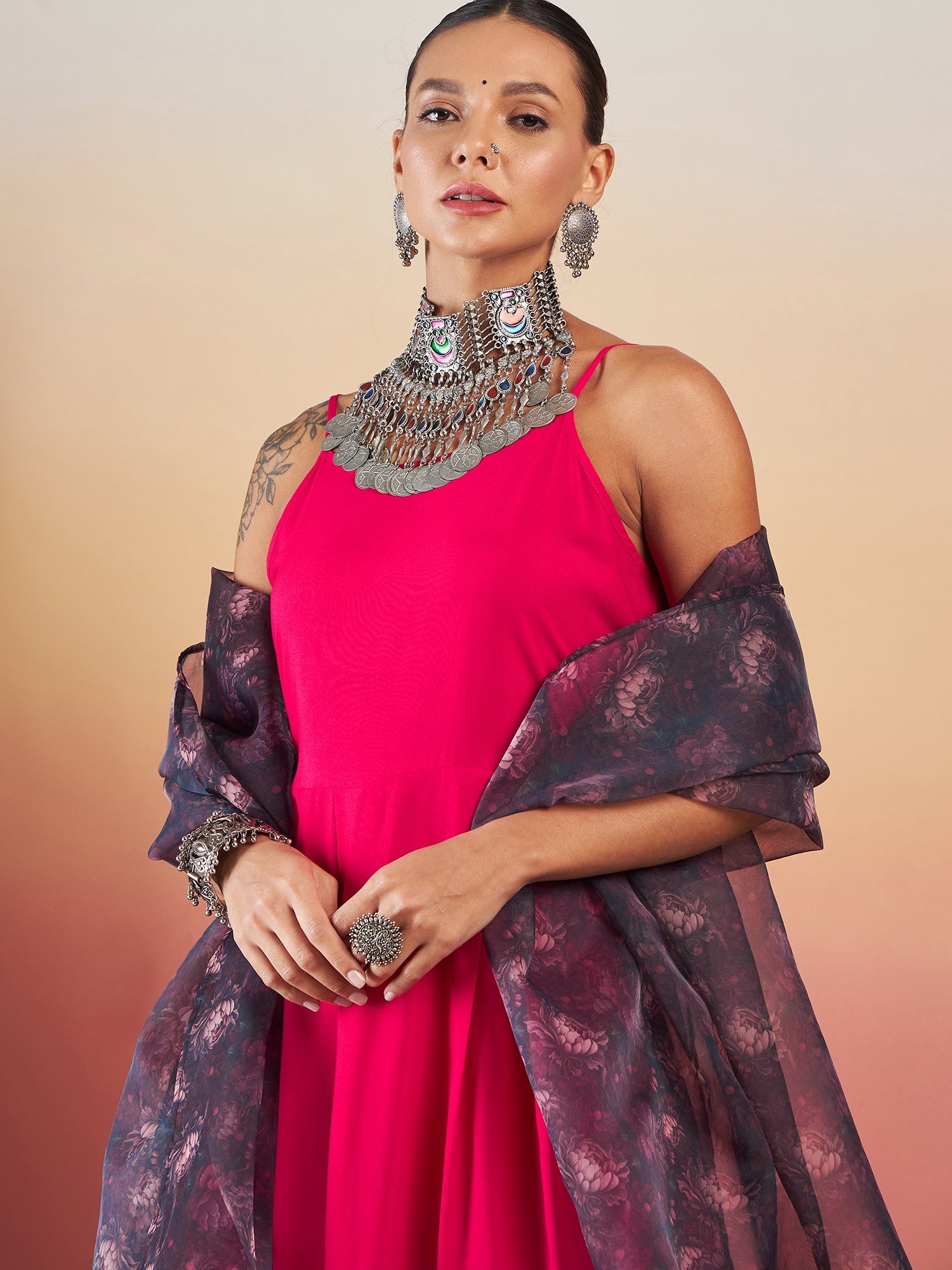 InWeave Fuchsia Strappy W Black Dark Floral Print Or Dupatta Set