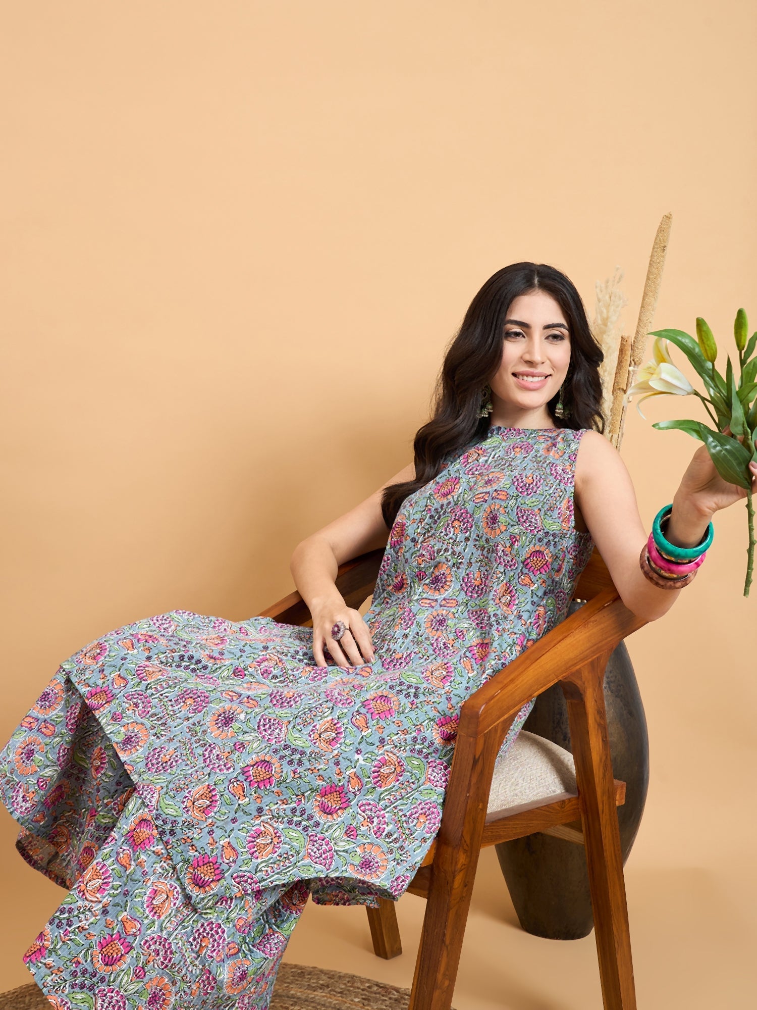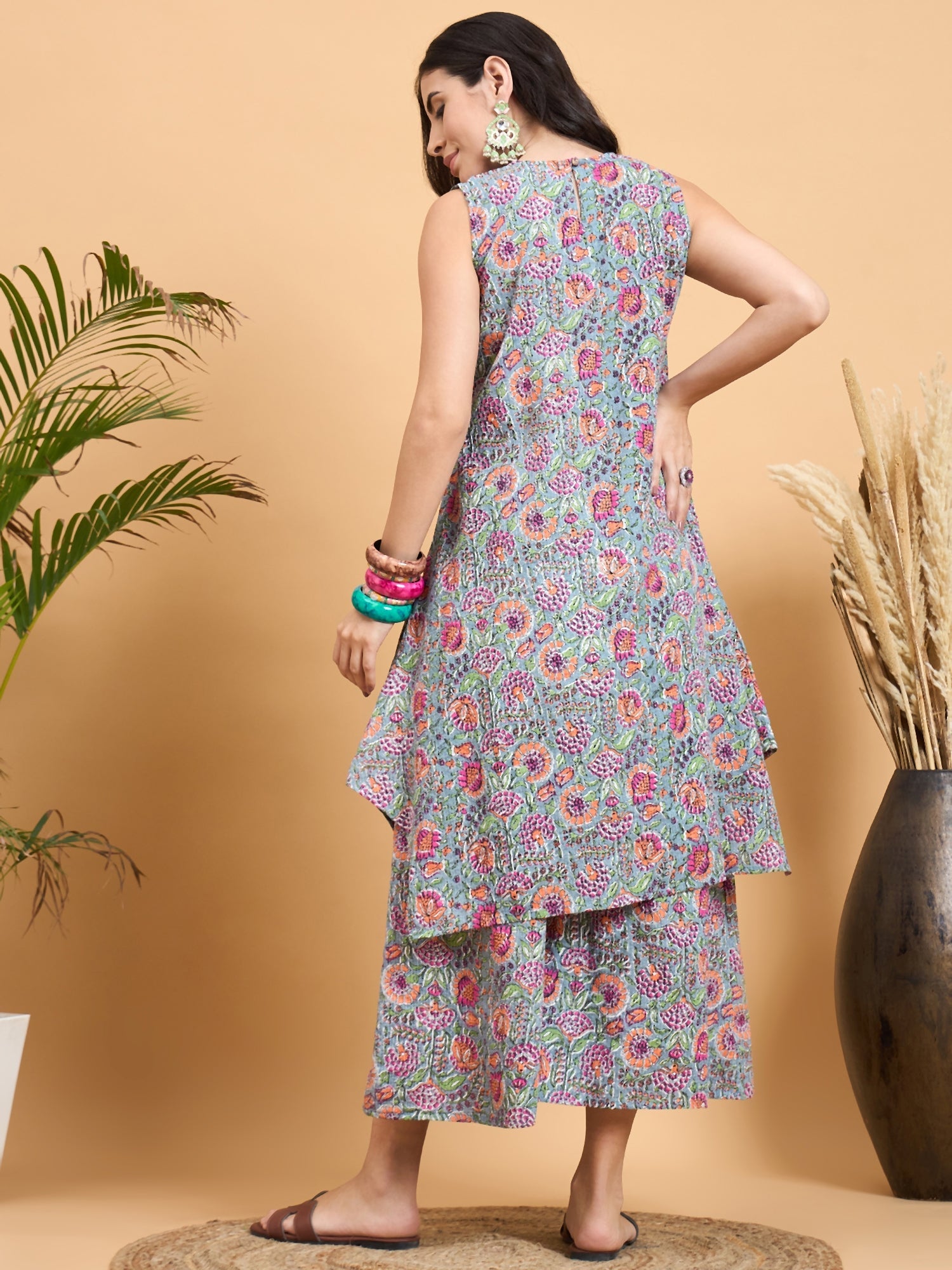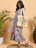 InWeave Grey Kantha Floral Jaal Short Palazzo Set