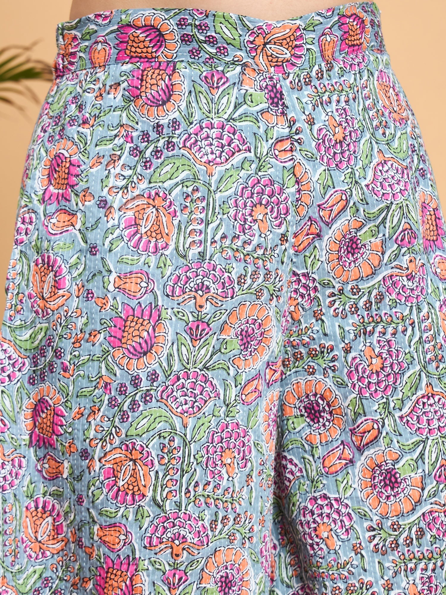 InWeave Grey Kantha Floral Jaal Short Palazzo Set - Distacart