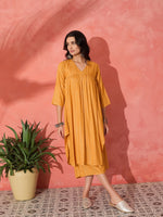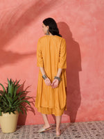 InWeave Mustard Lurex Flared V Neck Kurta Palazzo Set - XS