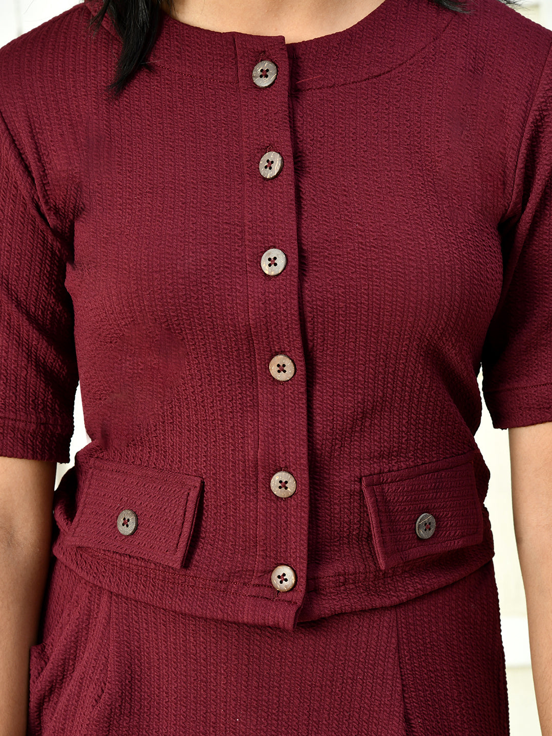 Myshka Girls Maroon Solid Polyester Top With Skirt Pack Contains: Package-1 Top, 1 Skirt Shape: Straight Fabric: Polyester Color: Maroon Wor...
