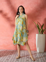 A refreshing pear green dress featuring a stylish windowpane print and a round neckline. This piece offers a modern, clean design that's perfect for daytime events or casual gatherings.