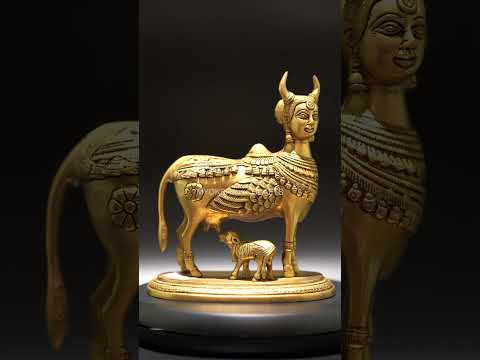 Introducing our divine offering, "Brass Kamadhenu with Calf Idol - Divine Source of Fulfillment and Nourishment." This captivating brass idol portr...