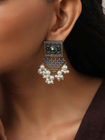 trueBrowns Silver Gold Tone Floral Silver Jaal Dangle Earrings