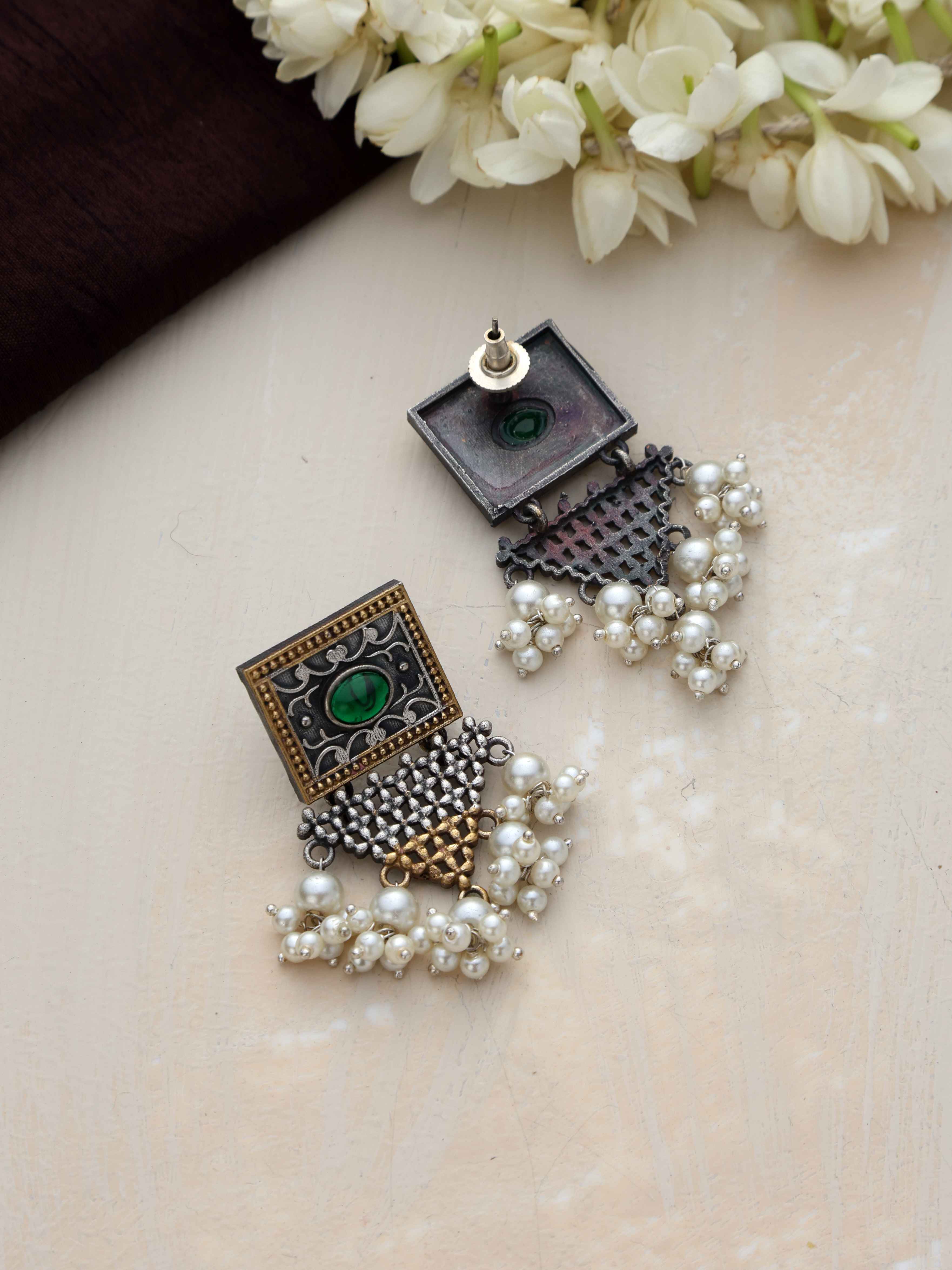 trueBrowns Silver Gold Tone Floral Silver Jaal Dangle Earrings - Distacart