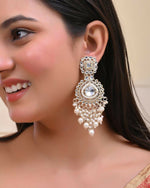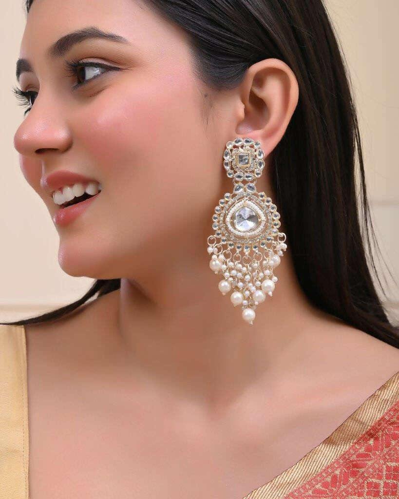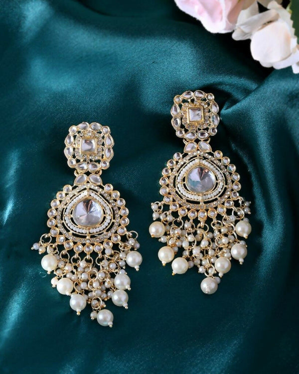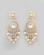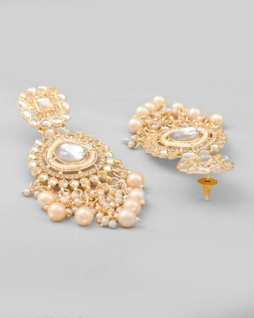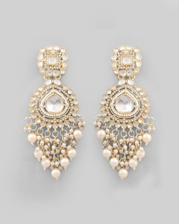 VOJ Gold-Polished Kundan Studded Drop Earrings