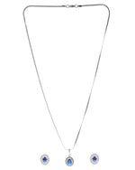 VOJ Silver Plated Blue Ad-Studded Pendant With Chain And Earrings Set