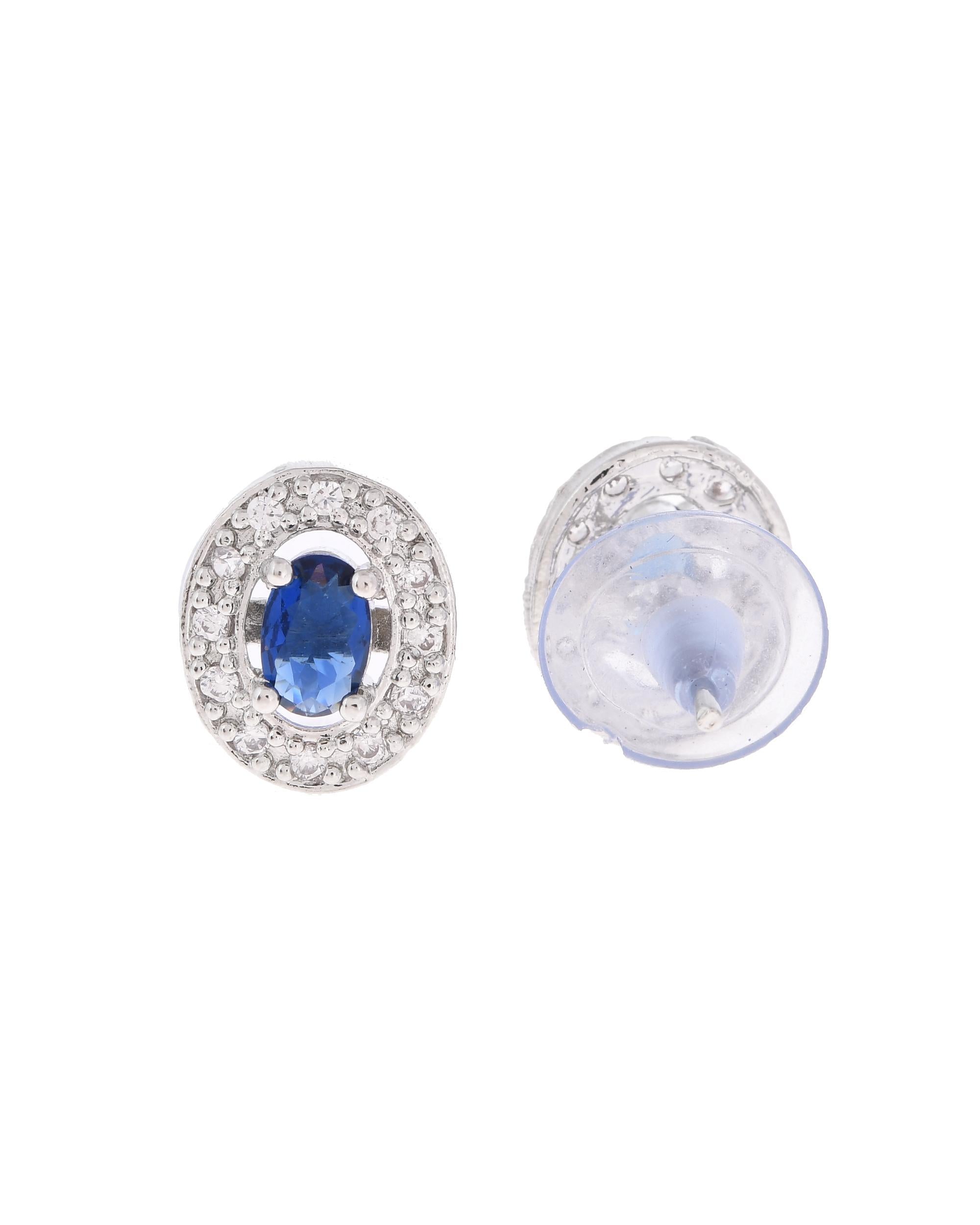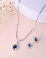 VOJ Silver Plated Blue Ad-Studded Pendant With Chain And Earrings Set - Distacart
