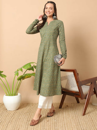 FIORRA Women's Printed Pure Cotton Kaftan Kurta - Yellow