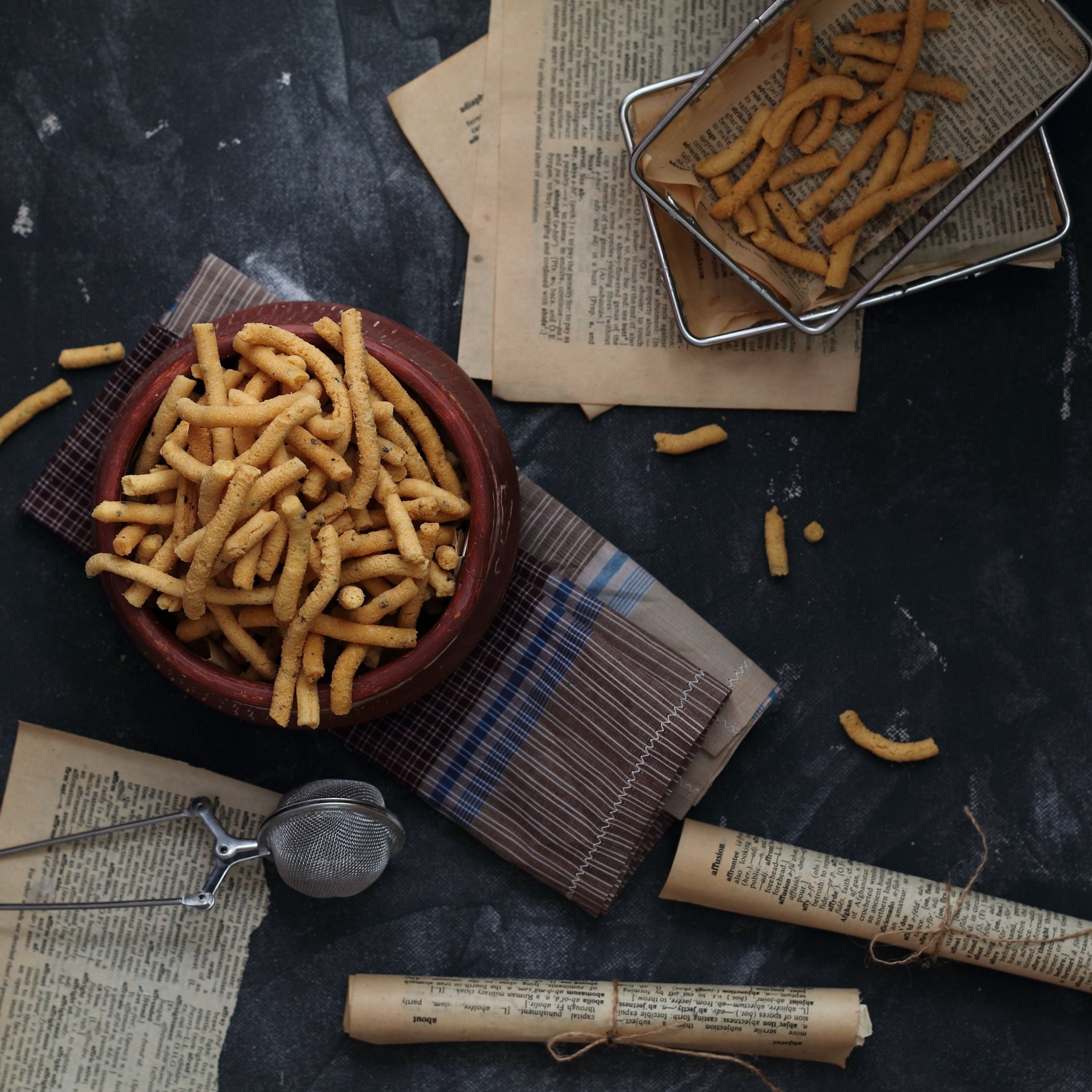Rice Flour, Gram Flour, Black Pepper Powder, Clarified Butter, Salt, Refined Groundnut Oil