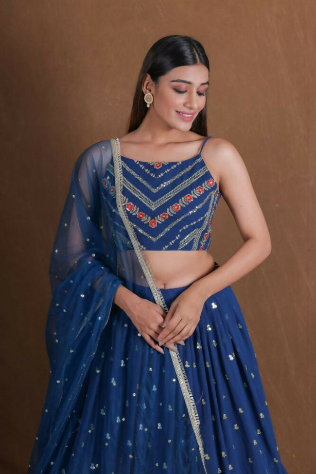 Blue Georgette Embroidery Sequence Work Lehenga Choli Set - Jihu Culture