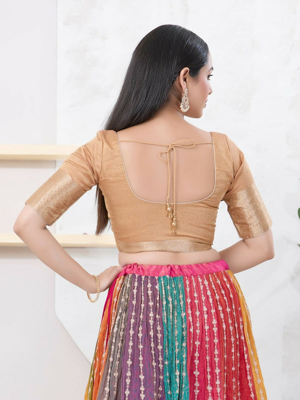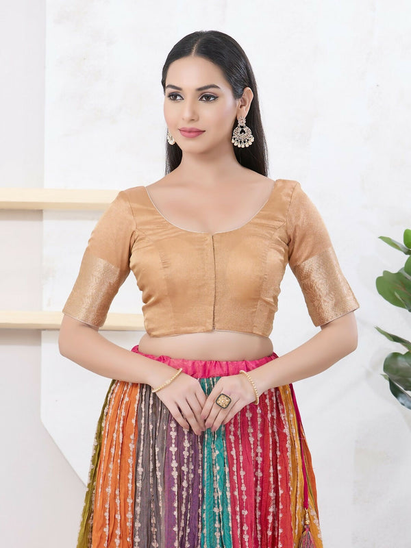 Joban Fashion Gold Brocade Elbow Sleeveless Front Open BlouseProduct Details: Color : Gold Fabric : Brocade Neck : Round Neck Sleeveless : Elbow Sl...