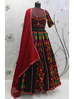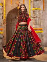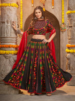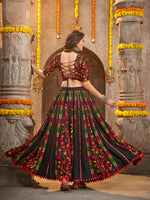 Myra Black Viscose Rayon and Cotton Embroidered with Print Designer Lehenga