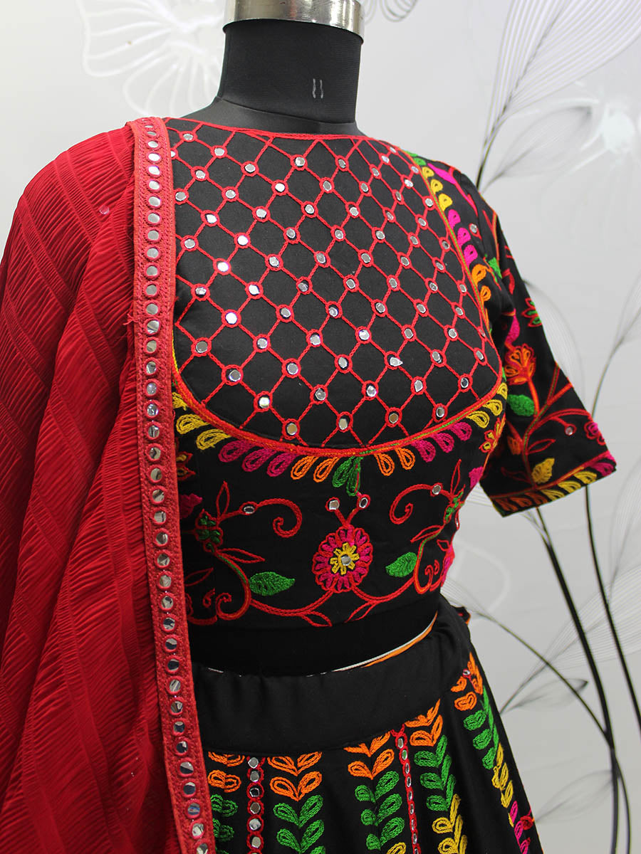 Myra Black Viscose Rayon and Cotton Embroidered with Print Designer Lehenga - Distacart
