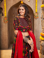 Myra Black Viscose Rayon and Cotton Embroidered with Print Designer Lehenga"Drape yourself in the mystique of our Designer Lehenga, a mesmerizing s...