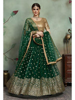 Dark Green Soft Net Heavy Embroidered Lehenga features a soft net blouse , soft net dupatta and soft net Lehenga. Embroidery is completed with Sequins. This style is made in India and checked by hand to ensure high quality.