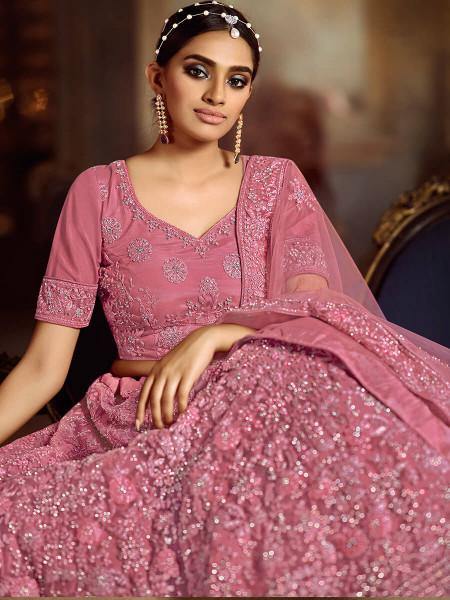 Myra Pink Soft Net Heavy Embroidered Lehenga - Distacart