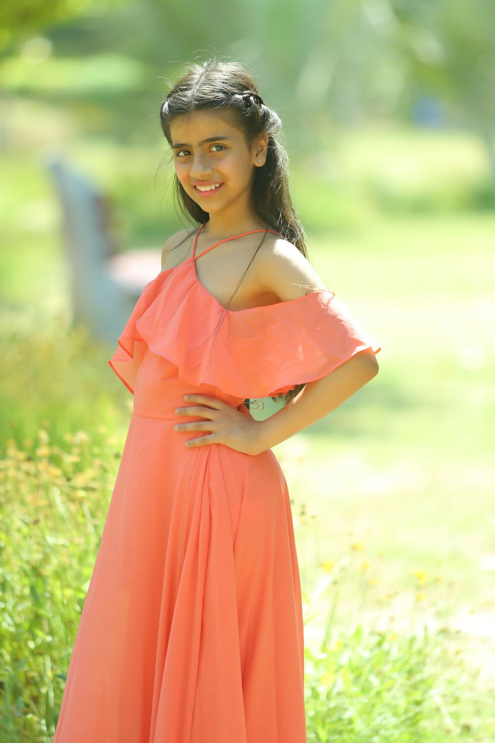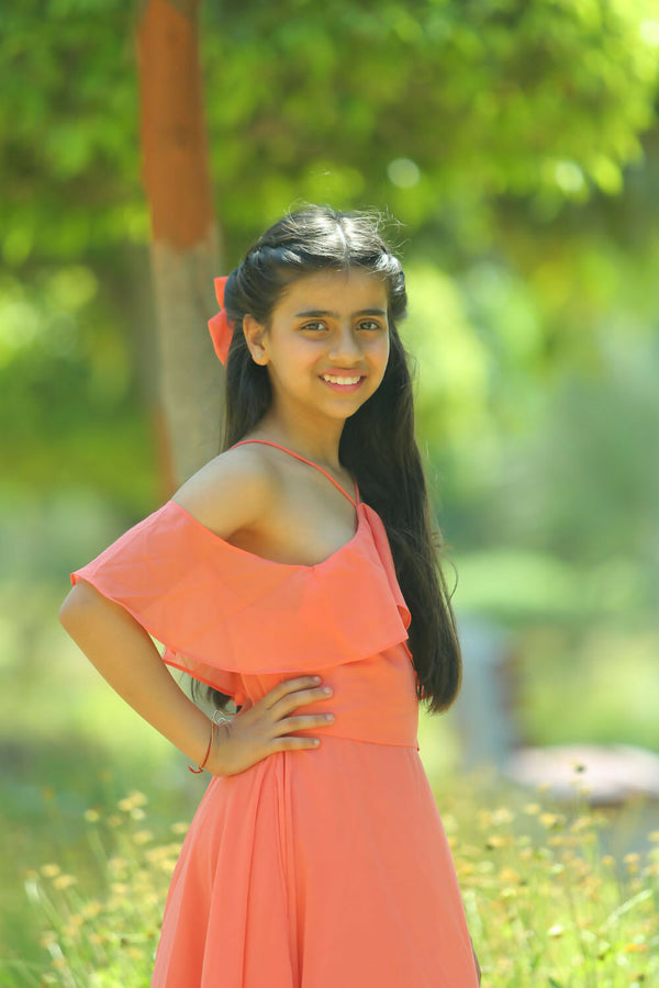 LH Luxury Fashion Lilah Maxi Dress – Elegant Off-Shoulder Ruffled Maxi Dress for Girls